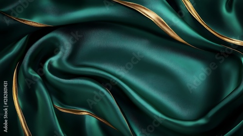 © Relaxe, Obraz premium Emerald Green Silk Drapery with Golden Accents: A Luxurious Textured Abstract