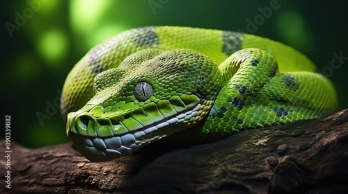 © MINHO, Fototapeta premium Emerald Green Snake Resting on a Branch