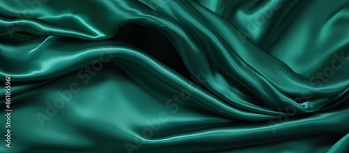 Obraz premium Emerald green soft silk fabric showcasing a textured pattern suitable for use as a background or pattern in a photograph. with copyspace image
