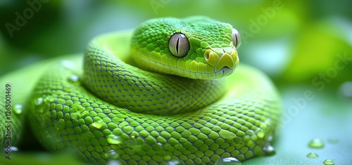 © Khoirul, Obraz premium Emerald Green Tree Python: A Close-Up Portrait