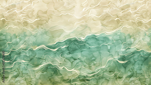 © M.Gierczyk, Obraz premium Emerald Green Watercolor Texture, Oceanic Geometric Pattern