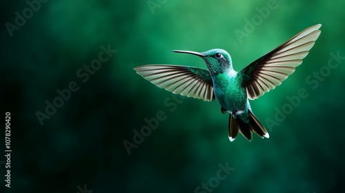© A4719, Fototapeta premium Emerald Hummingbird in Flight Green Nature Background Wildlife Photography