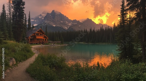 Fototapeta premium Emerald Lake in Yoho National Park looks beautiful at sunset.