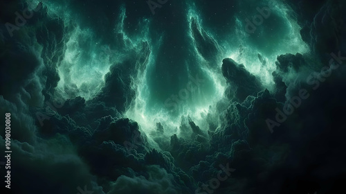 Obraz premium Emerald Nebula Abstract Background