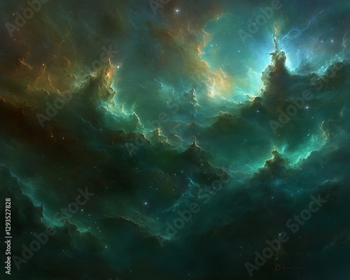 Obraz premium Emerald Nebula Cosmic Cloudscape