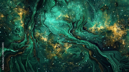 © AItist, Obraz premium Emerald Nebula Wallpaper