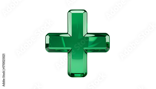 © Khalid, Fototapeta premium Emerald plus symbol gleaming softly on isolated transparent field, ethereal isolated on solid white background