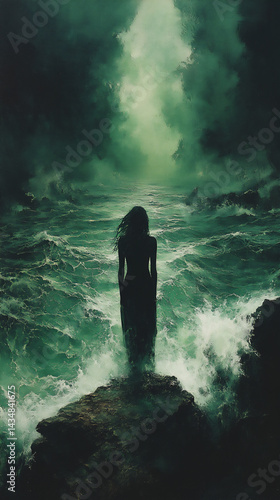 © 자인 김, Obraz premium emerald silence, distant figure (implied),