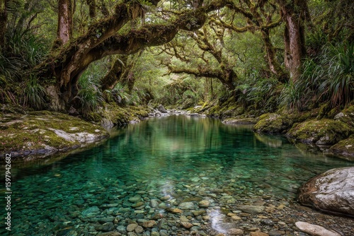© pbm, Fototapeta premium Emerald Stream Through Lush Forest