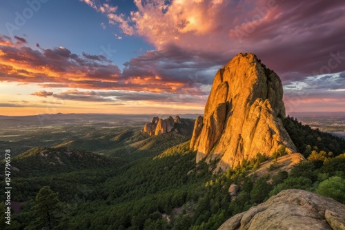 © Arethaawykoff, Fototapeta premium Emerald Sunset Over Golden Tenderloin Canyon: Panoramic Vista of Nature's Majesty