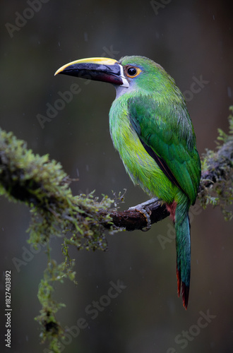 © Rajh, Naklejka premium Emerald Toucanet perched on a mossy branch