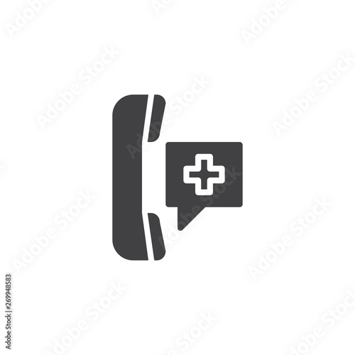 Fototapeta premium Emergency call vector icon. filled flat sign for mobile concept and web design. Medical support telephone glyph icon. Symbol, logo illustration. Vector graphics