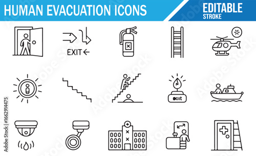 Naklejka premium Emergency Evacuation Icons for Safety Plans