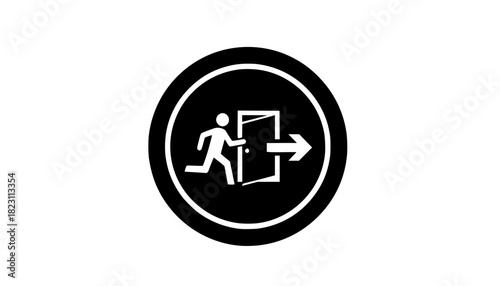 Obraz premium Emergency Exit Sign – Running Man to Door with Arrow, Fire Evacuation Safety Symbol