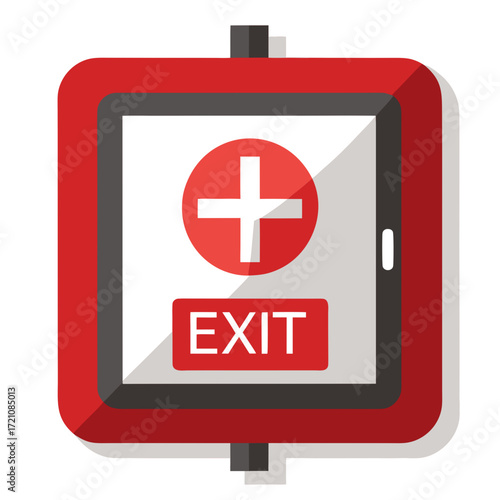 Fototapeta premium Emergency exit sign with red frame and medical symbol inside
