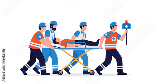Obraz premium Emergency medical team carrying patient on stretcher, vector illustration,...