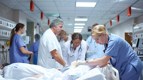 Fototapeta premium Emergency Medical Team Providing Urgent Care in Hospital Setting