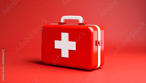 Fototapeta premium “Emergency Rescue Kit in 3D Style on Red Solid Background, Isolated”