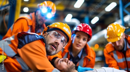 © thekob5123, Obraz premium Emergency Response in Warehouse After Work Accident