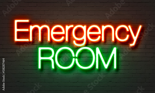 Fototapeta premium Emergency room neon sign on brick wall background.