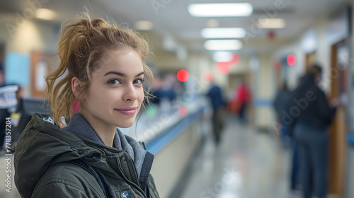 Fototapeta premium Emergency Room Reception: In a bustling hospital emergency room, a compassionate receptionist greets patients with warmth and empathy, helping to ease their anxiety during times of