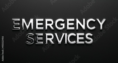 Fototapeta premium Emergency Services silver shining shiny solid metallic lettering on plain black background