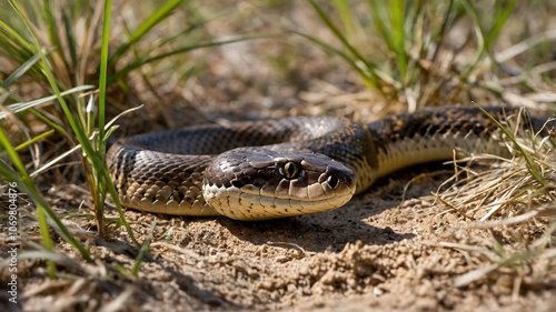 © Chamika, Fototapeta premium Emerging from Shadows: The Louisiana Pine Snake in Sunlit Bliss
