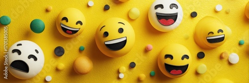© Anat art, Fototapeta premium Emoji Background Showing Different Feelings and Expressions, With Yellow, Green, and Black Decorations