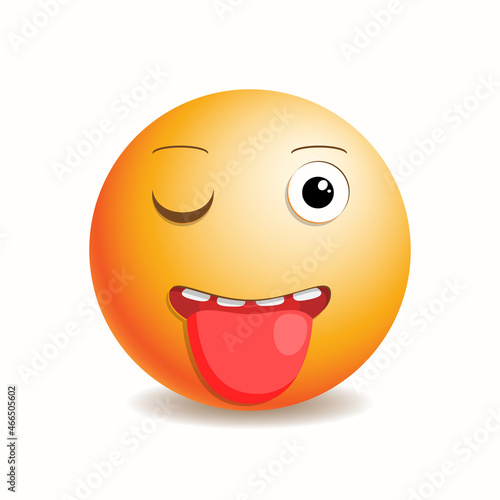 © Olha Bodanina, Fototapeta premium Emoji emoticon teasing winks and shows tongue.