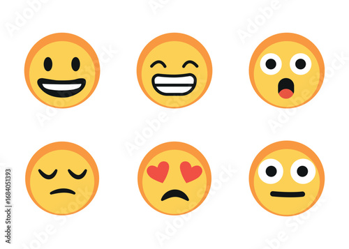 Fototapeta premium Emoji Face Icons Set – Cute Cartoon Emoticons with Different Expressions