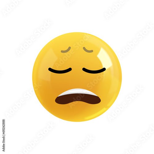© irkus, Fototapeta premium Emoji face upset in hysterics. Realistic 3d Icon. Render of yellow glossy color emoji in plastic cartoon style isolated on white background. Illustration. PNG