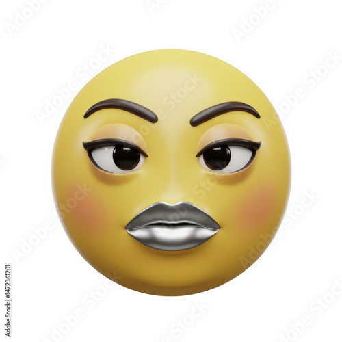 © Sejjil, Fototapeta premium Emoji face with silver lips isolated on transparent background