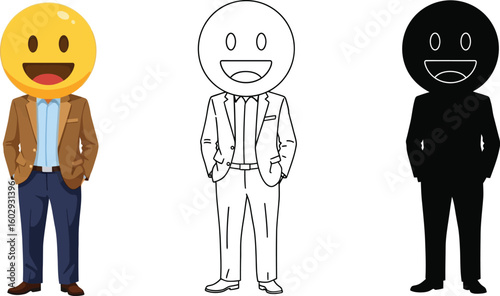 © Khan, Naklejka premium Emoji head business man vector images for design and illustration with outline and silhouette