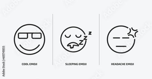 Naklejka premium emoji outline icons set. emoji icons such as cool emoji, sleeping headache vector. can be used web and mobile.