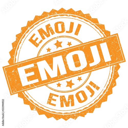 © outchill, Obraz premium EMOJI text on orange round stamp sign