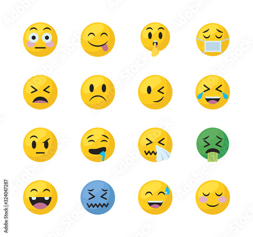 Fototapeta premium Emojis faces flat style icon set vector design