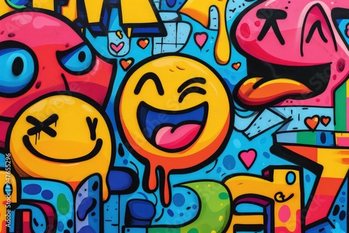 Fototapeta premium Emojis intertwined with abstract graffiti elements, creating an urban art vibe,