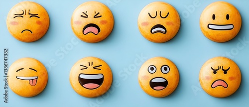 © depri, Fototapeta premium Emojis on Light Blue Background