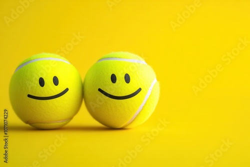 © LimeSky, Fototapeta premium Emoticon balls on yellow backdrop symbolize customer feedback