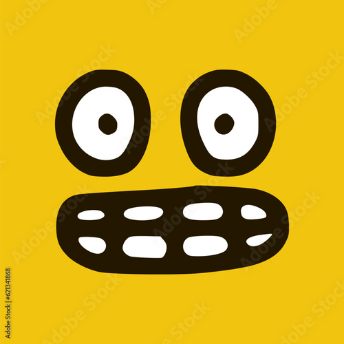 © Vladislav, Fototapeta premium Emoticon showing teeth emoticon in doodle style yellow background. Vector Illustration