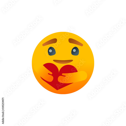© ferid, Fototapeta premium Emoticon vector, Round Yellow cartoon hugging heart love design, Popular Social Media New emoji We are in this together design isolated vector file for use in chat, email, massage and comment.