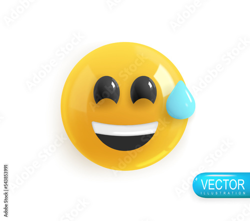 Fototapeta premium Emotion Realistic 3d Render. Icon Smile Emoji. Vector yellow glossy...