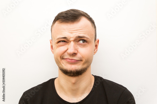© Павло Кукуруза, Fototapeta premium emotion wink, young man on a white background, human emoji