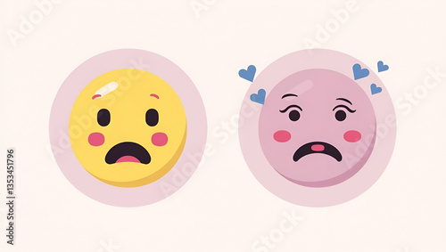 Fototapeta premium Emotional Face Icons: Happy & Sad with Like/Love Buttons Design