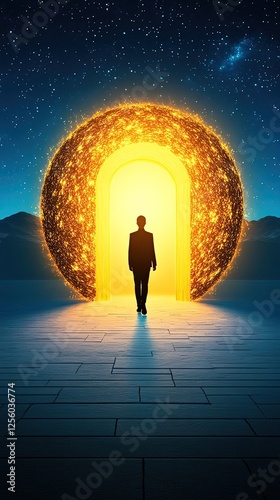 © kazitafahnizeer, Obraz premium Emotional intelligence mastery concept A figure entering a glowing, mystical doorway.