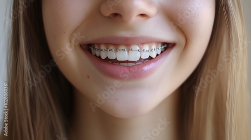 Fototapeta premium Emotional journey of a teenager getting braces, from initial nervousness to growing confidence, accompanied by close-up before-and-after photos of their smile