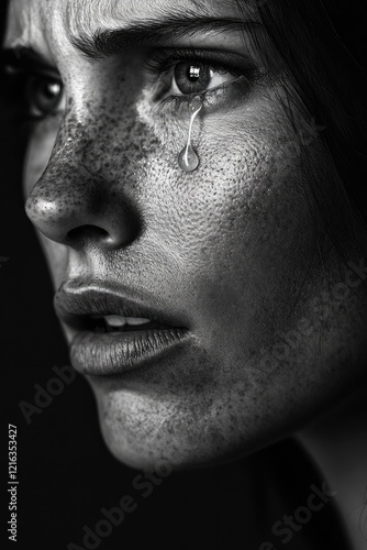 © Viktoriia, Obraz premium Emotional portrait capturing raw vulnerability and intense expre