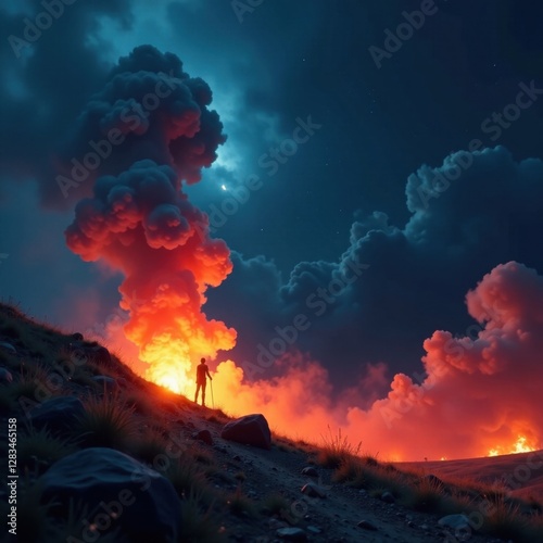 © OneWayPhoto, Fototapeta premium Emotive smoke and fire on a mysterious night scene, ambiance, smoke, mysterious