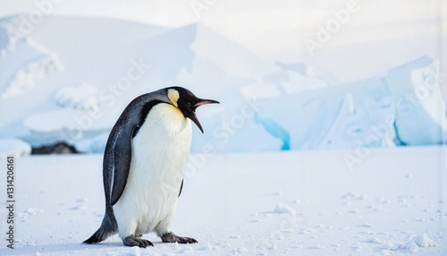 Fototapeta premium Emperor penguin calling out on icy landscape