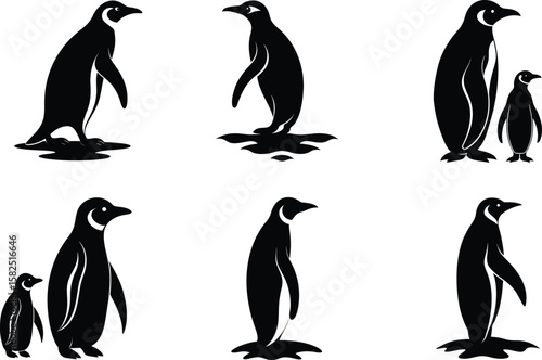 Obraz premium Emperor Penguin Silhouette Vector Illustration Set